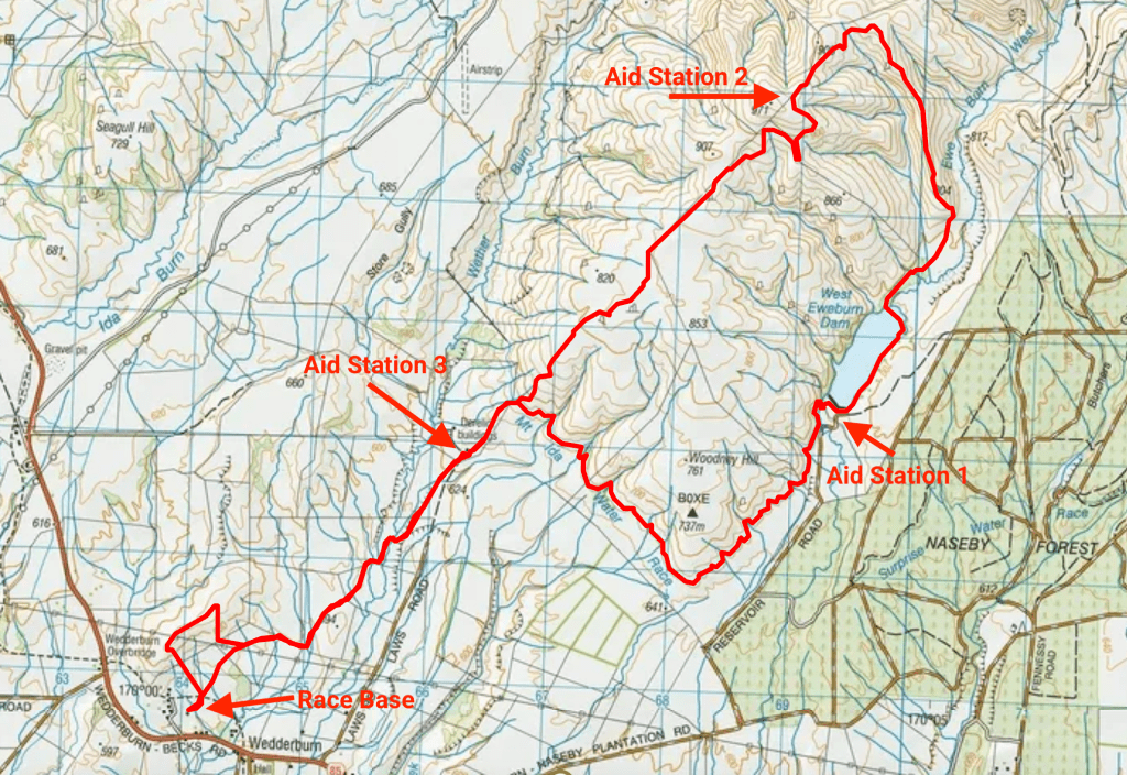 The final 7kms are some of the most open, giving you the chance to hunt down your competition. Head over some paddocks before crossing a magnificent wide open plateau before a final wee climb up onto the last spur, where you will start to hear the cheers of supporters and get a view over Wedderburn before dropping down to the finish line at the Race Base.